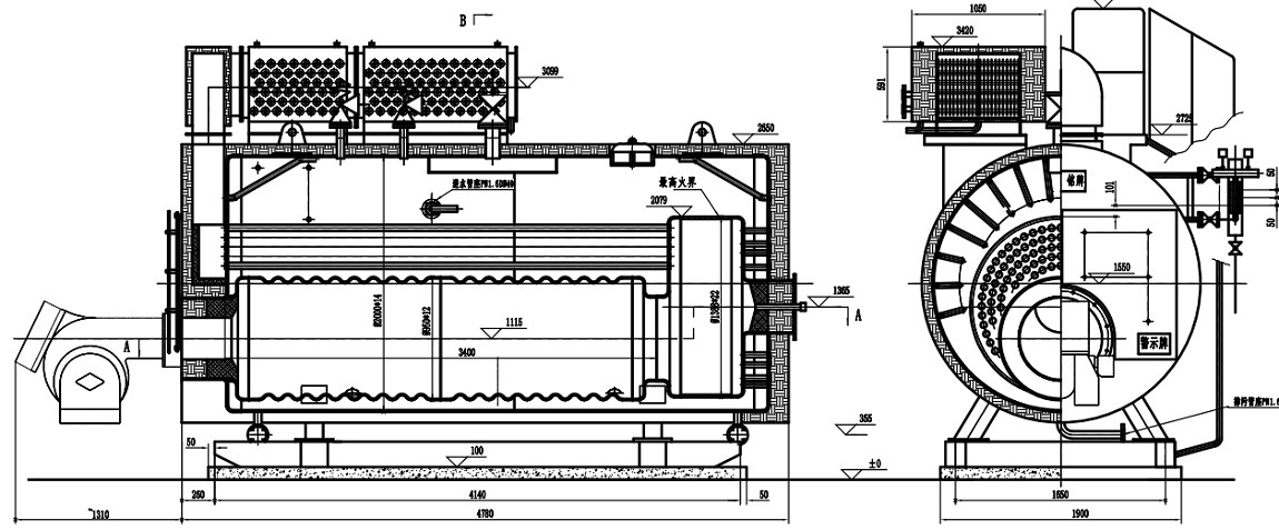 燃?xì)庹羝仩t是我集團(tuán)公司引進(jìn)德國技術(shù),根據(jù)技術(shù)和經(jīng)驗設(shè)計而成的鍋殼式三回程濕背燃油(氣)鍋爐。鍋爐運行自動化,燃料經(jīng)燃燒器霧化后,形成的火炬充滿在全波形爐膽內(nèi),并通過爐膽壁傳遞福射熱,此為回程。燃燒產(chǎn)生的高溫?zé)煔庠诨厝际覂?nèi)匯聚,轉(zhuǎn)向進(jìn) 入*二回程,即螺煙管管束區(qū),經(jīng)對流熱換后,煙氣溫度驢逐漸降低**前煙箱,并在此轉(zhuǎn)向進(jìn)入第三回程,即光管管束區(qū),隨后煙箱流入煙囪,*后排入大氣。